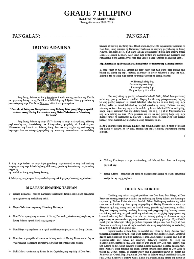 The list is divided in three parts. LWR M5-A1 - RIZAL. Ang Ibong Adarna ay isa sa pinaka kilalang kwento na makikita sa literatura ng ating bansa.