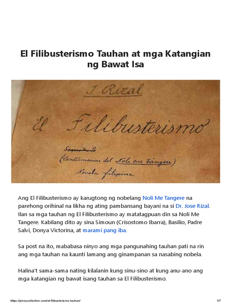 El Filibusterismo Tauhan At Mga Katangian Ng Bawat Isa Pdf