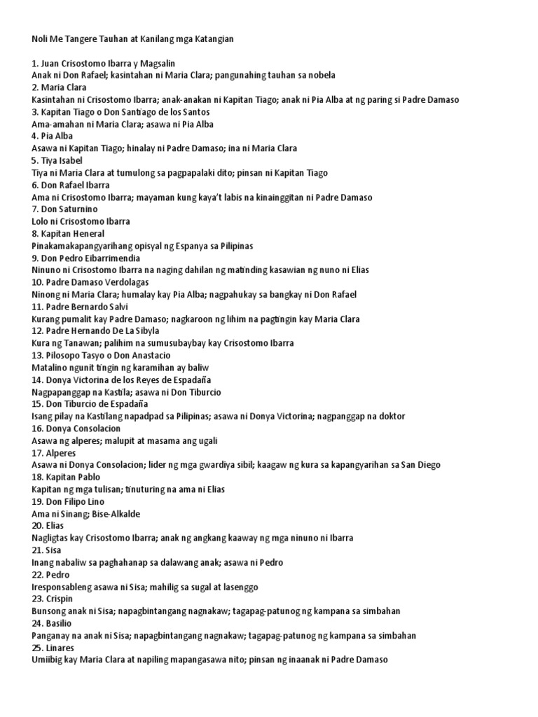 Noli Me Tangere Tauhan At Kanilang Mga Katangian Pdf
